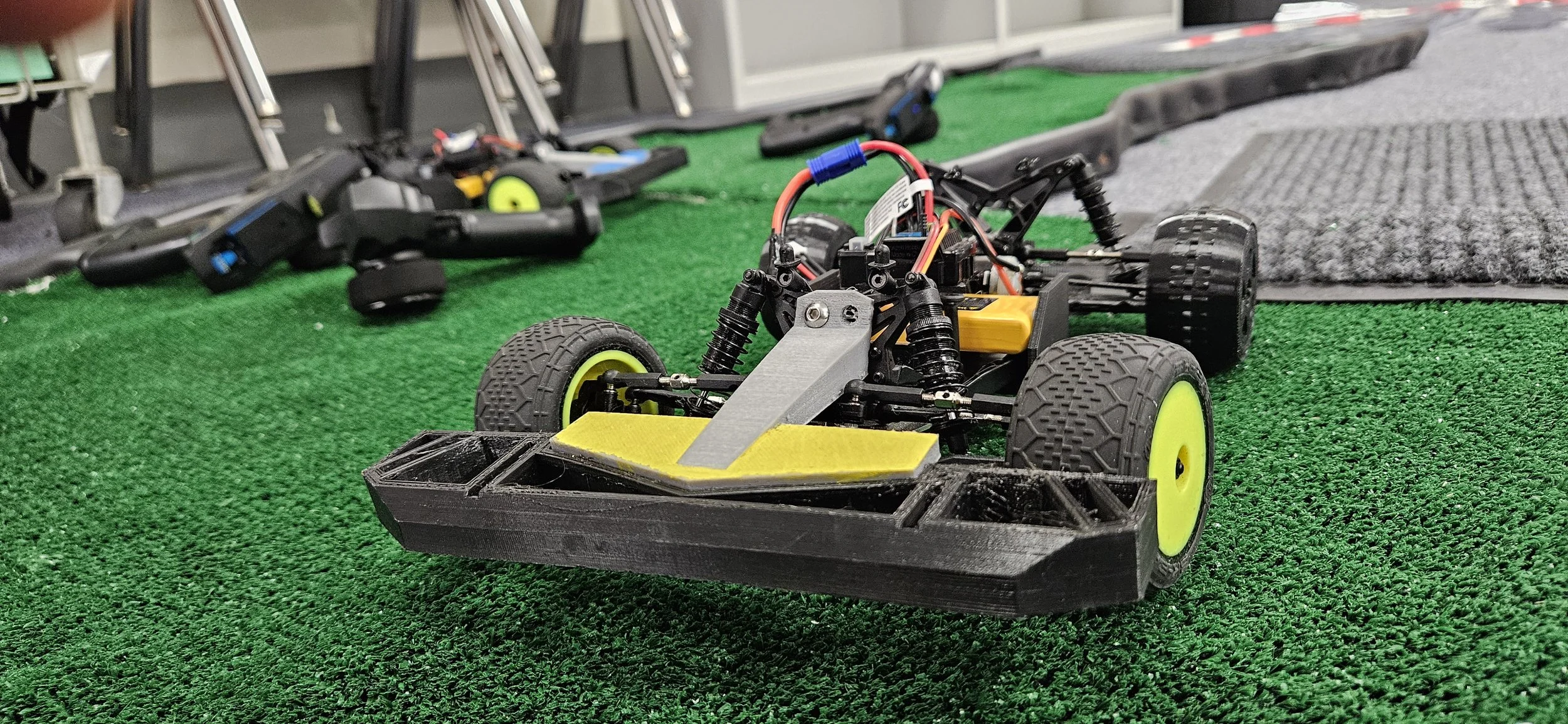 ** The RCs, are equipped with oversized bumpers and low grip tires, keeping speeds perfect for indoor fun.